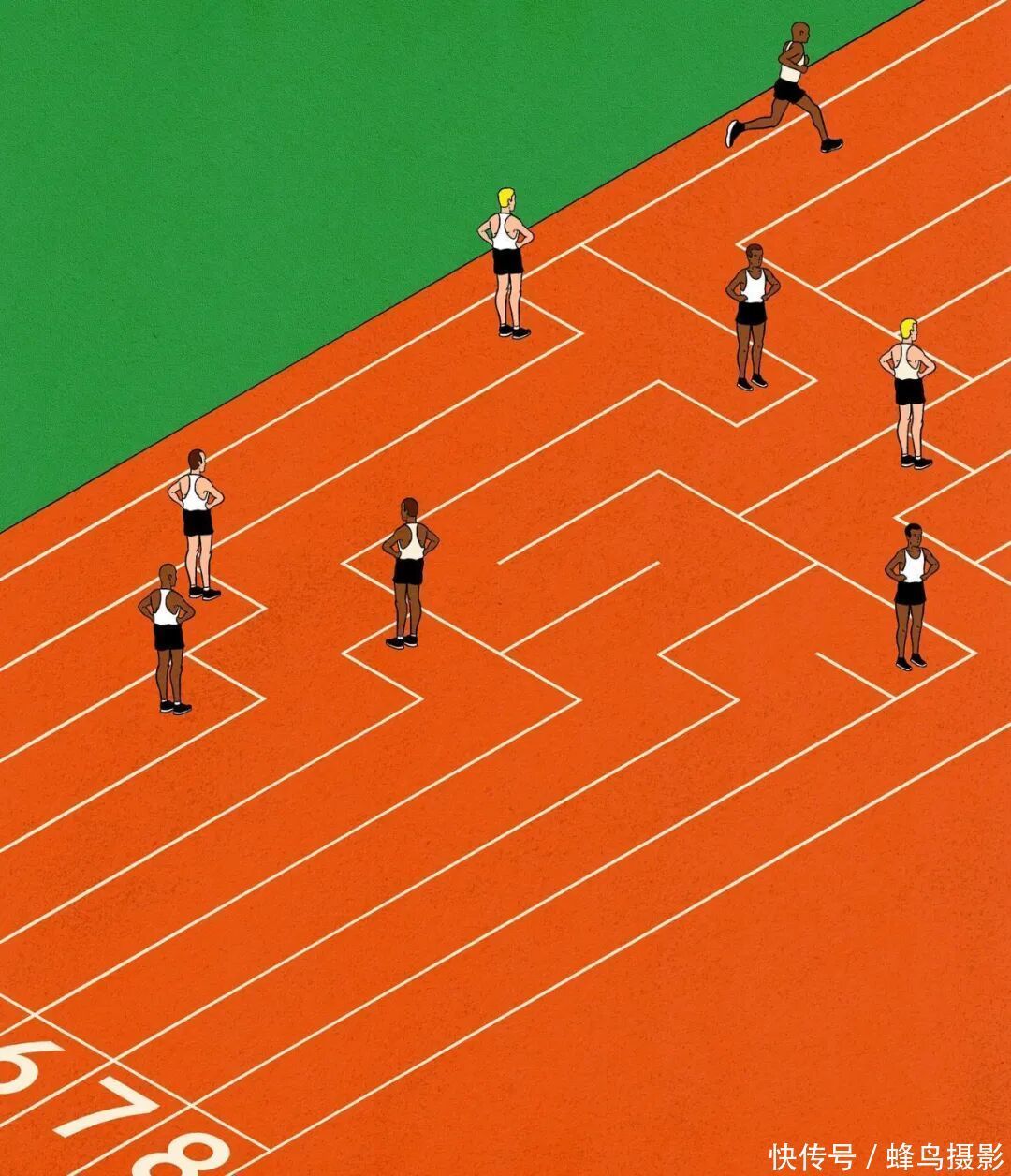 在一幅赛跑主题的作品中,西蒙将跑道变成了迷宫。有些人起跑顺畅却在转弯后遇到屏障,有些人起步艰难却能一直奔跑。这哪里是比赛,分明就是人生的真实写照!照镜子的真相