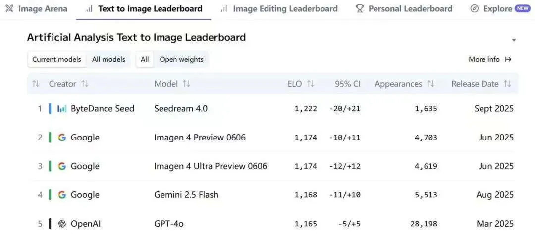 Seedream4.0位居Artificial Analysis文生图榜单第一