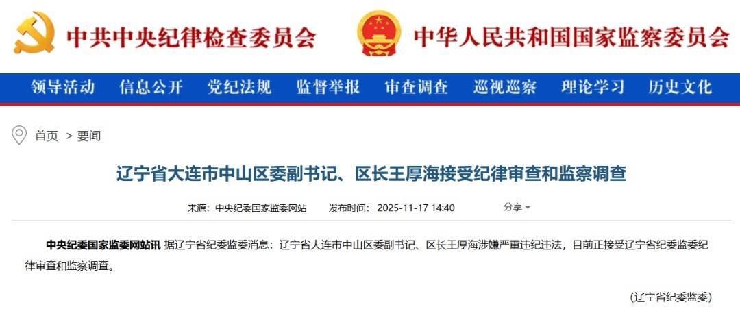 11月17日,据中央纪委国家监委网站消息:辽宁省大连市中山区委副书记、区长王厚海涉嫌严重违纪违法最安全的线上配资平台,目前正接受辽宁省纪委监委纪律审查和监察调查。