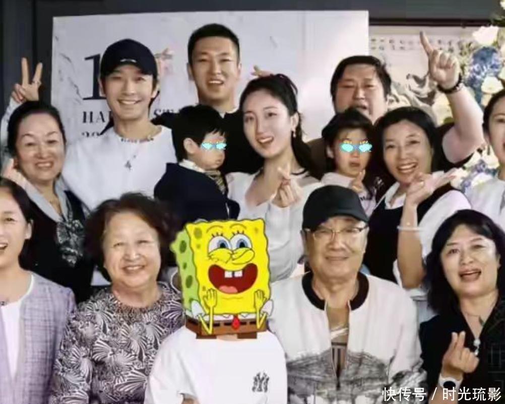 不过最值得一提的还是小海绵,合照中她坐在中心位被奶奶抱着,