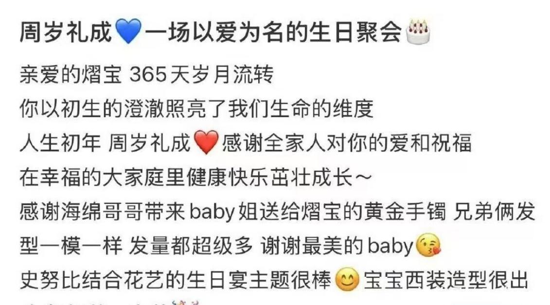 据悉,当天是黄晓明舅舅家的小孙子迎来了一周岁的生日,