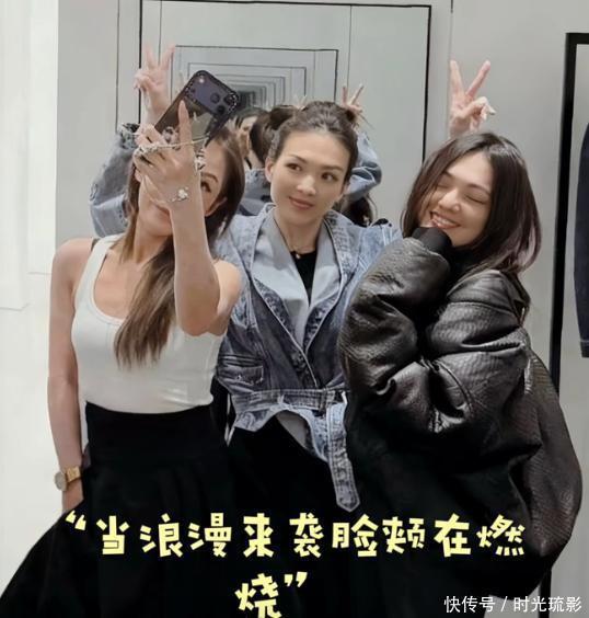 而跟她合照的还有两位美女,估计是她的小姐妹,也相当的漂亮,